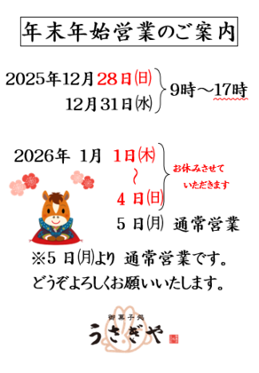 誠に勝手ながら、日曜日の定休日に加え不定休でお休みさせていただきます。